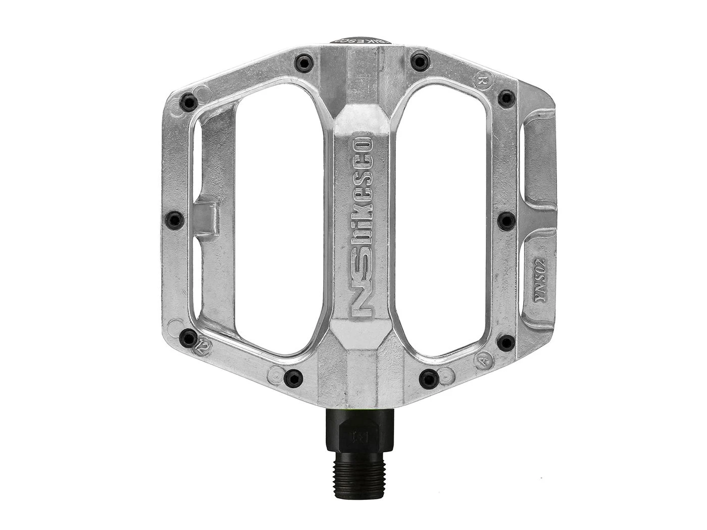 Specification:material: die-cast aluminiumconcave low-mid profile platform with embossed NS-Bikes logoplatform size & thickness: 95mm x 95mm x 19mmloose ball system or one sealed bearing and bushing system15 mm flat wrench slot + 6 mm Allen hex socketaxle thread size: standard 9/16”removable 3mm & 4mm high pinsweight: ~440g loose / ~455g sealed